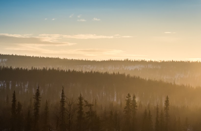 Tielle näkyi yhden hakkuuaukean kohdalta myös Kaarestunturi. Likemmäs tunturia johtava Kaaresseläntie ei ollut autolla ajettavissa lumen takia.
