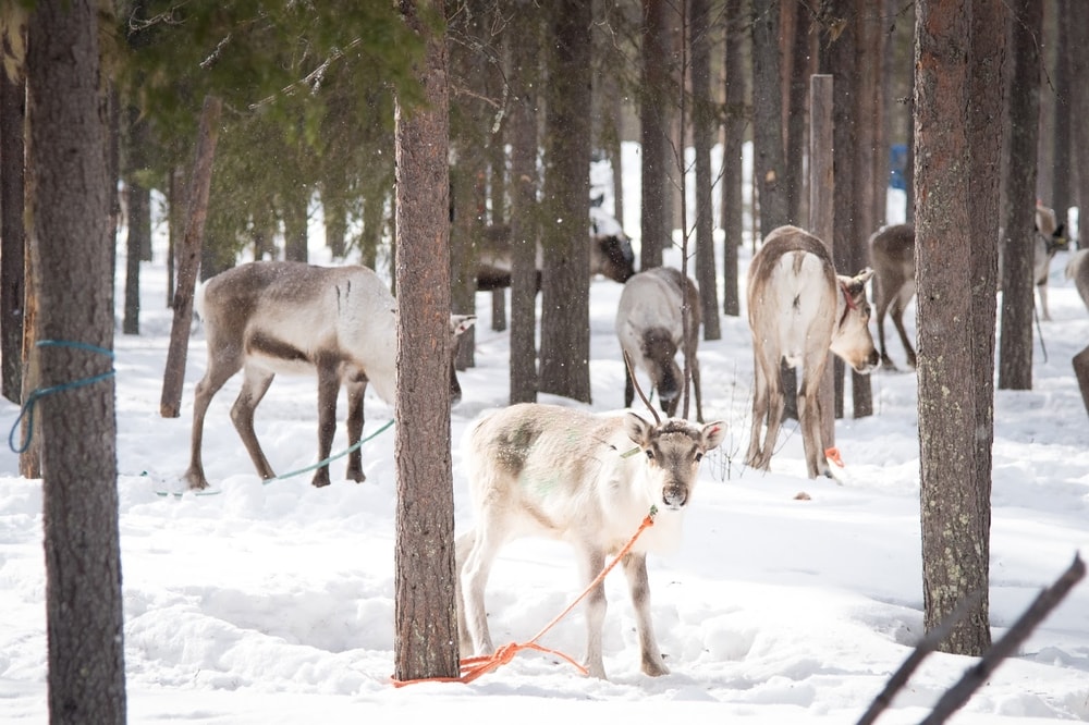 Silloin kun kisat eivät olleet käynnissä, poroja saattoi ihastella alueen päädyssä olevassa metsäaitauksessa.