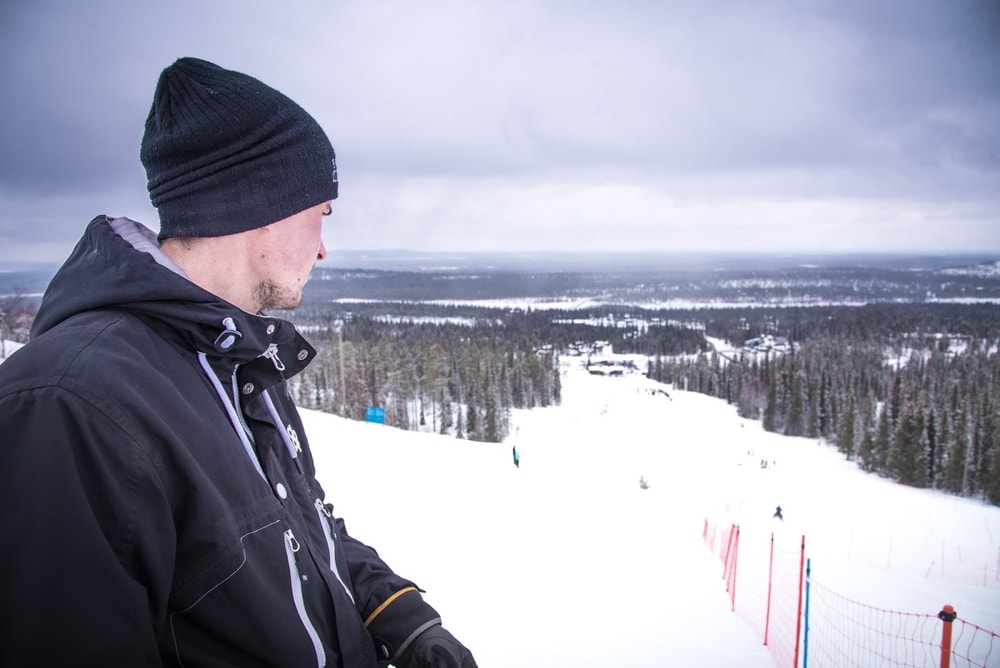 Kapusimmekin melkein ylös saakka, kun muu yleisö jäi kutakuinkin rinteen puoliväliin tai jopa terassille istumaan. Maisemat olivat tosi hienot, vaikka sää ei ollut kirkas, niin silti näkö kantoi aika kauas. Rinteessä hujahti pari, kolme tuntia. Kylmäkään ei ehtinyt tulla, kun kiipesimme kisojen aikana ensin ylös ja sitten hiippailimme hiljalleen alas.