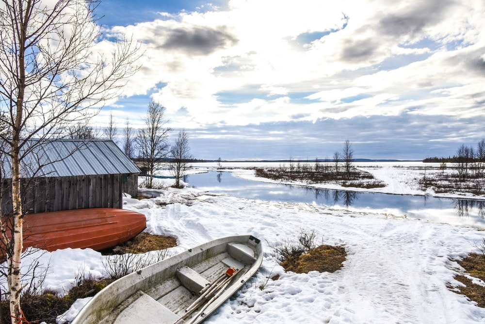 Istuin kotvan ja kuuntelin maailmaa. Erämaata, lintuja ja järveä, joka malttavaisena kiirehtimättä odotti sitä hetkeä, että jääkuori joskus sulaa. Järven takana taivas punersi Kittilän suunnilla, sinisten vaarojen takana.