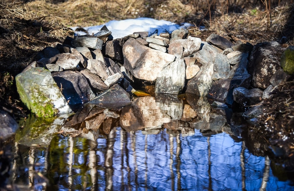 Vielä pitäisi joku iso, laattamainen kivi saada raahattua juuri oikiaan kohtaan, jotta lähteelle olisi hyvä polvistua vaikka juomaan ja kasvoja huuhtaisemaan.