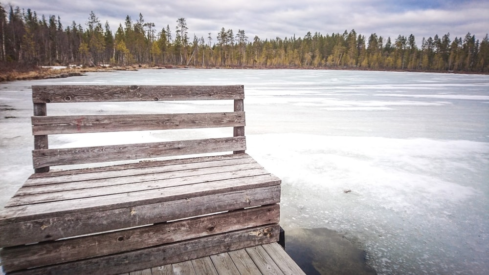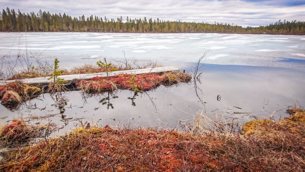 Lampi oli jäässä, mutta maasto sula. Sulanut lumi olikin paljastanut rannoilta yllätyksen, joka ainakin minun maailmassani on aivan kärkiluokan yllätyksiä: pitkospuut.