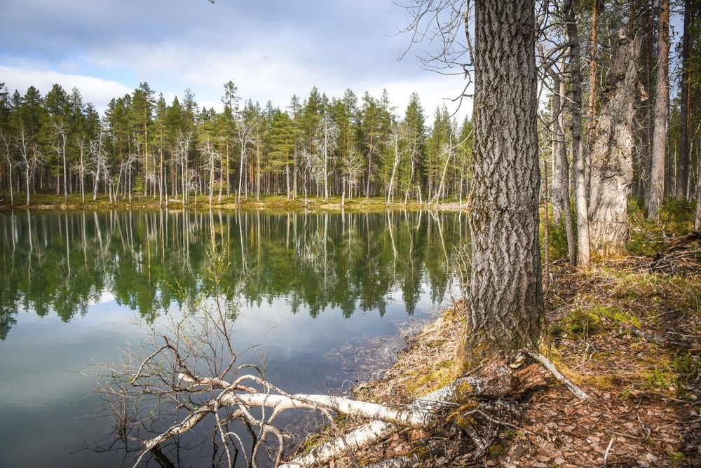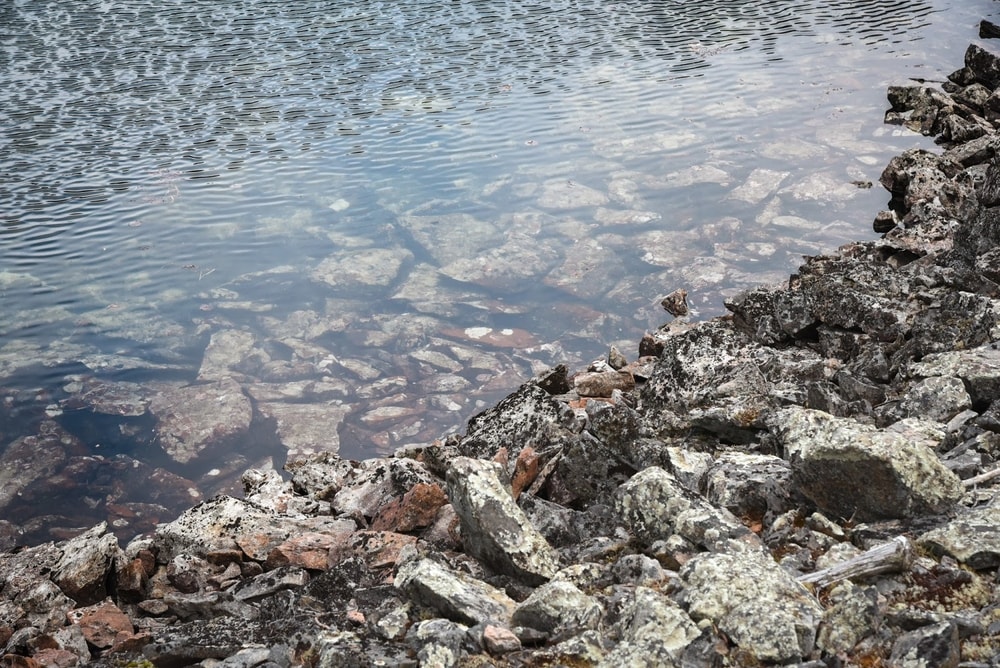 Lampi oli melko pieni ja sen vesi oli kristallinkirkasta. Koitin kuikuilla, mutta en nähnyt kaloja. Kiersin lammen kaikessa rauhassa vastapäivään.