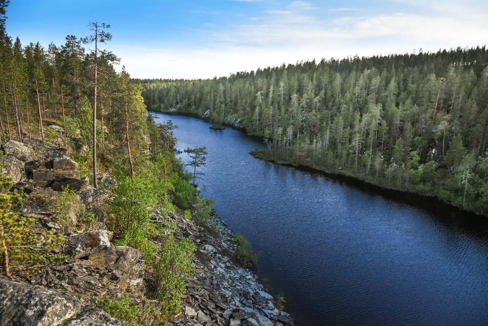 Ihailimme jyrkänteen maisemia pitkän aikaa. Kemijärventieltä ohi ajavien autojen ääniä kuului välillä, mutta muutoin ei muusta maailmasta ollut tietoakaan. Kesäillan auringossa piehtaroiva Hirviäkuru ei vaikuttanut varsinaiselta turistimagneetilta, vaikka maisemineen olisi kyllä todellakin kaikkien näkemisen arvoinen.