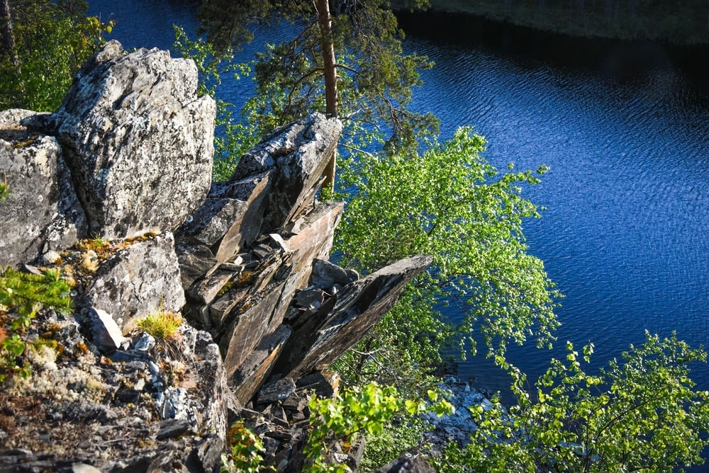 Tunturilammelta lähdimme ajelemaan jo kotia kohti, mutta pysähdyimme matkalla Orajärven Hirviäkurulla, josta olin kuullut paljon kehuja. Jätimme auton pienen hiekkatien varrella olevalle levennykselle ja astelimme metsätietä jalan eteenpäin, kunnes tulimme jyrkänteen reunalle.