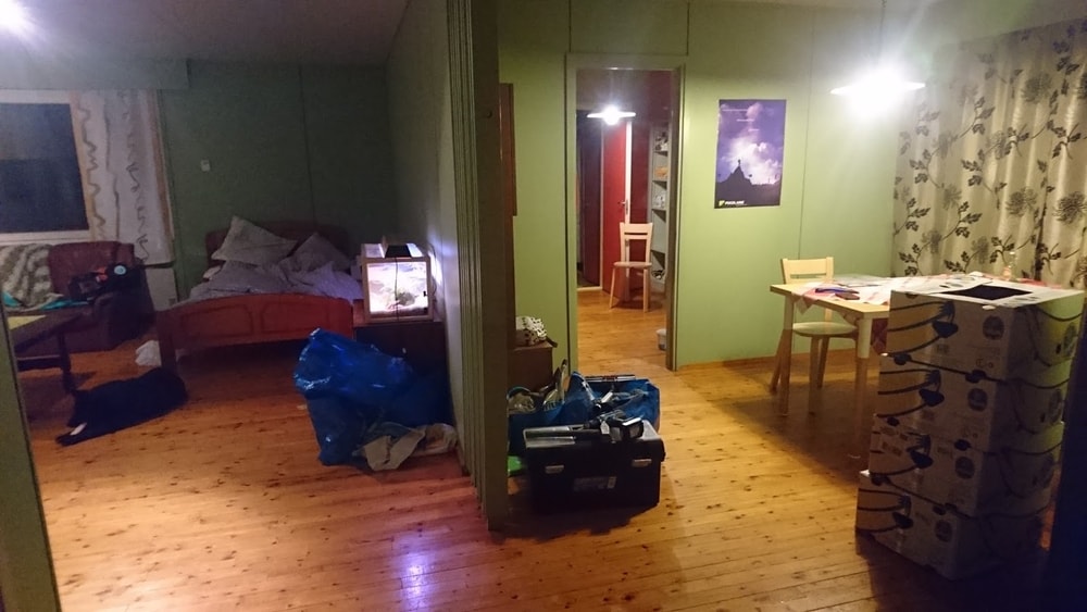Paljon on toki käytetty myös maalia ja hartiapakkia. Tavaraa on lähtenyt kierrätykseen valtavia määriä. Ostimme talon kalustettuna, mutta täällä olleista kalusteista suurin osa on joutanut hävitettäväksi, kuten toki etukäteen aprikoimmekin. Kuvio meni siis niin, että suostuimme ottamaan talon vastaan kalusteilla, jotta myyjä säästyi niiden pois roudaamisen vaivalta.