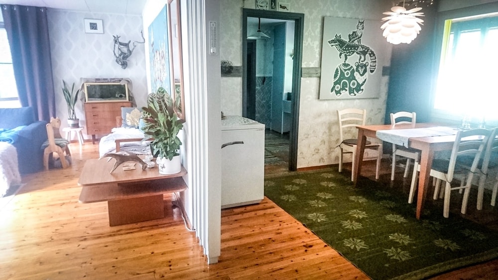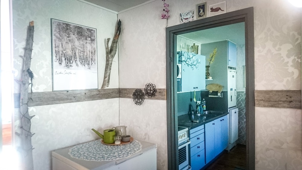 - Maalaamalla itse taulut ja hyödyntämällä ”taiteena” karttoja (mm. keittiön seinällä ilmainen Lapin kartta)