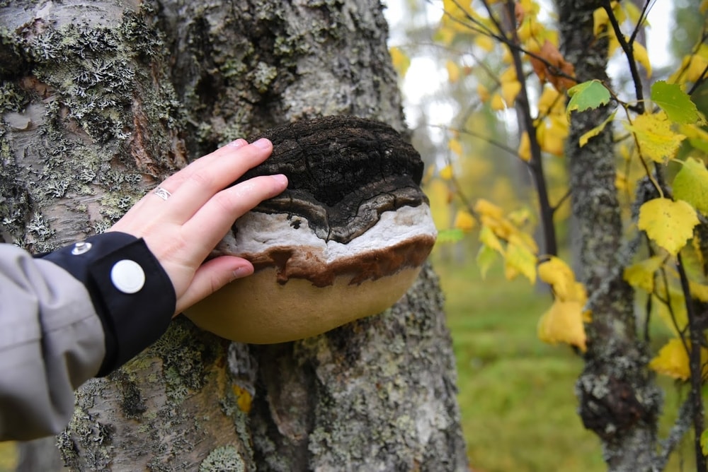 Olo alkoi olla sellainen, että kovin pitkää matkaa kauemmas en enää jaksaisi taittaa. Vilkaisin karttaa ja päätin harppoa suoraan rinnettä alas ja palata metsätielle metsän halki lompsimalla. Mennessäni söin mustikoita, variksenmarjoja ja puolukoita. Eräästä koivusta löytyi pullea, hymysuinen kääpä.