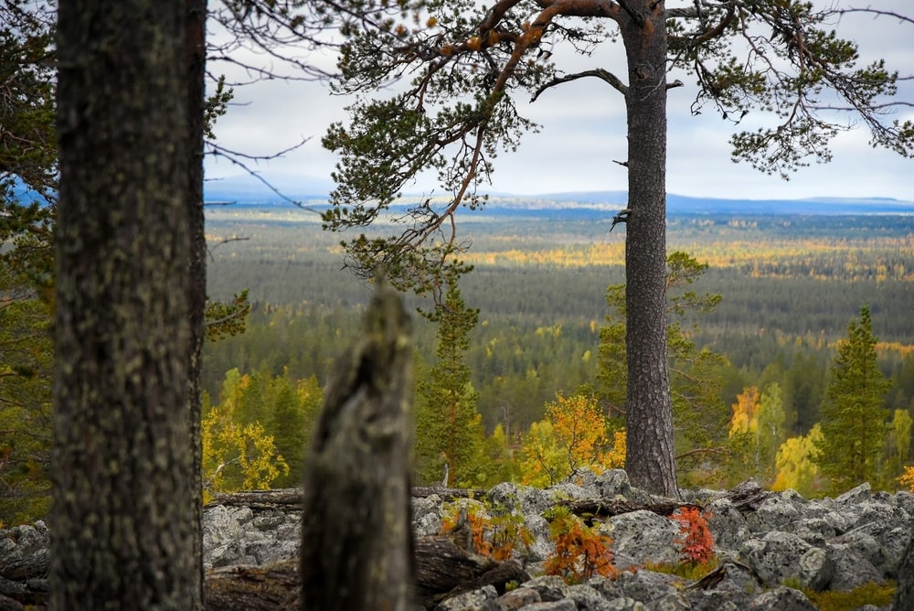 Kaarestunturi on kiinnostanut minua enemmän kuin mikään muu kohde näillä main. Se on harvojen tuntema, ei näy juuri minnekään, sinne ei ole tieviittoja eikä sinne koskaan aja sattumalta. Kaares on suuri ja monilakinen tunturialue, jonne poiketaan ensin pitkän matkaa nelostieltä ja viimeiseksi ajetaan vielä osuus santatietä tunturin helmojen metsiin. Ehkä juuri kohteen suuruuden ja salaperäisyyden vuoksi olin koko kesän ajan lykännyt siihen tutustumista. Olin aivan turhaan pelännyt, että tunturille johtava tie on huonokuntoinen – se oli aivan erinomaisessa kunnossa puusiltoineen kaikkineen.
