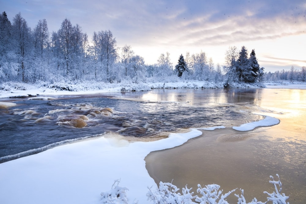Viikonlopun aikana kävimme myös Unarissa Ulingasjoen vanhalla myllyllä. Lunta oli juuri sopivan vähän, että kulkeminen oli vielä helppoa. Yllätyimme kun kuulimme jo kaukaa, että koski on sula ja kohisevainen. Löysimme parin kilometrin taipaleen jälkeen ihan mahdottoman kauniin paikan, jossa olimme perillä juuri puolen päivän aikaan. Istuimme laavulla kuuntelemassa kosken kohinaa. Eväänä oli glögiä ja graavilohta.