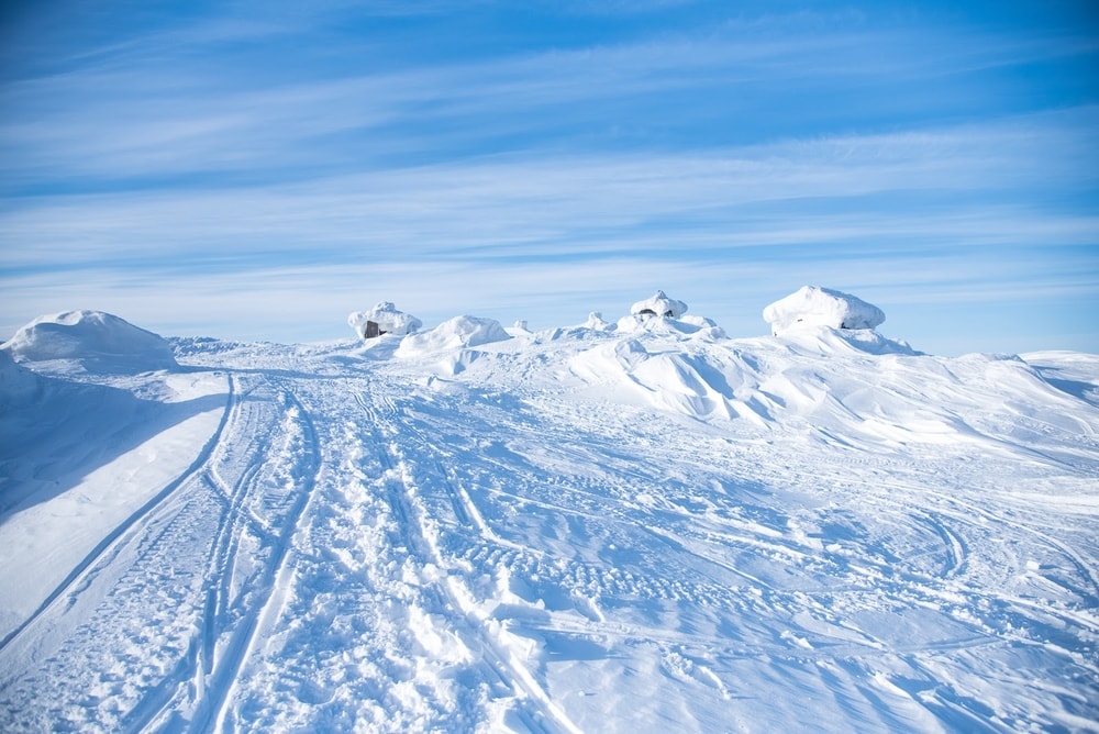 Reitti oli tasainen ja leveä kuin maantie, sitä oli juhlava ajaa aina siihen saakka, kunnes huipulle johtava tie kääntyi oikealle ja hirveä pomputus alkoi. Onneksi sitä ei kestänyt kauan, ennen kuin aloimme keretä huipulle ja tuulen kovaksi pieksemä hanki alkoi taas tasoittua.
