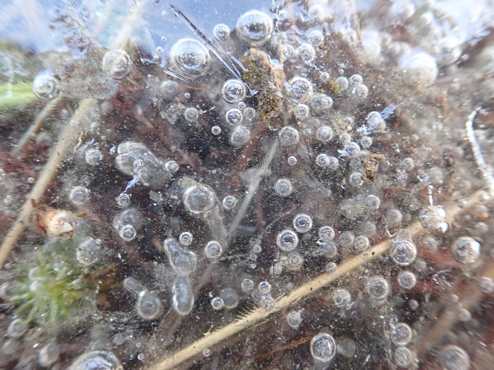 Iltasella vesilammikon pinta alkoi jo jäätyä, ja siihen oli muodostunut kuplia.