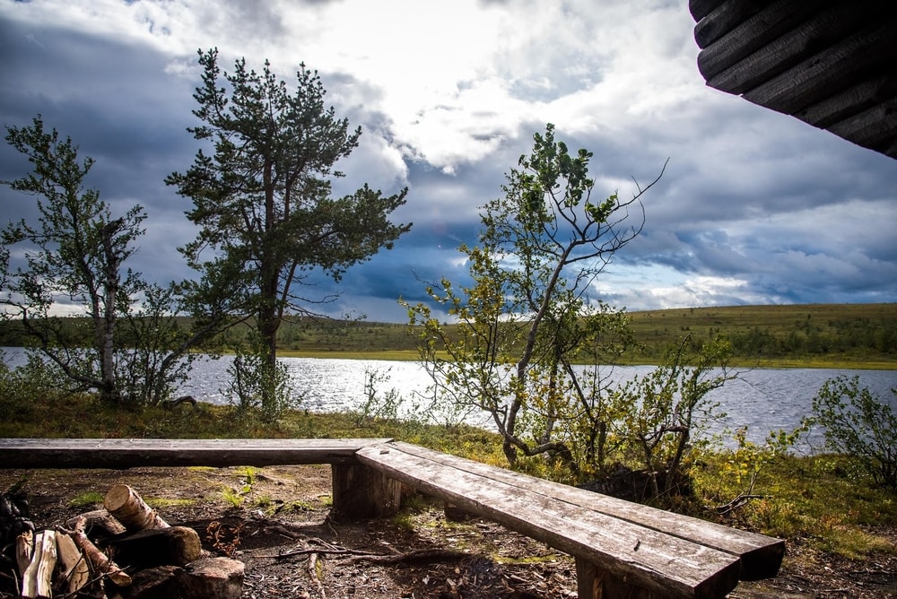 Istuskelimme laavulla hyvän tovin. Söimme suolakeksejä ja joimme ananasjaffaa. Raapustin meistä rivin, pari vieraskirjaankin. Tuumailimme, minne olivat tunturin takaa kohoavat sadepilvet matkalla. Ohi ne lopulta menivät. Olo oli sellainen, että siitä olisi aivan luontevasti voinut palata takaisin kotiin Kittilään.