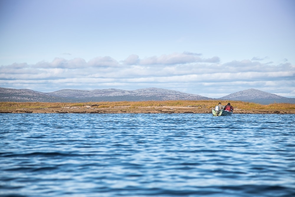 Seurueemme pakkautui suuren tavaramäärän kanssa kahteen jokiveneeseen, joita paikalliset kuskit ohjasivat. Päällemme saimme superlämpimät haalarit ja se olikin onni, sillä vaikka olin pukeutunut pakkasyön jälkeen jo muutenkin lämpimästi, olisi minun tullut kylmä ilman haalaria. Syysaamu oli raikas ja jokivene kyyditsi meitä niin vauhdikkaasti, että viima olisi kylmettänyt liian kevyesti pukeutuneen matkalaisen.