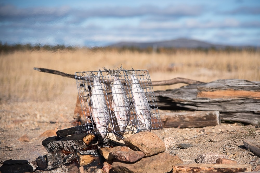 Sää oli täydellinen: tuuleton, syksyisen raikas ja aurinkoinen. Vesi oli monin paikoin tyyni. Näimme joutsenia ja merikotkia, ja katselimme vedessä hyppiviä kaloja. Pysähdyimme eräälle hiekkarannalle tietenkin myös lepäämään ja evästelemään. Miehet loihtivat nuotiolla nokipannukahvit, ja herkuttelimme myös muutamalla komealla siialla ja muilla eväillä.