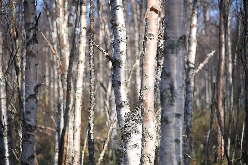 Mies veti vesakkoterällä vatukon alas ja kaatoi metsästä pienempiä, pystyyn kuolleita koivuja.