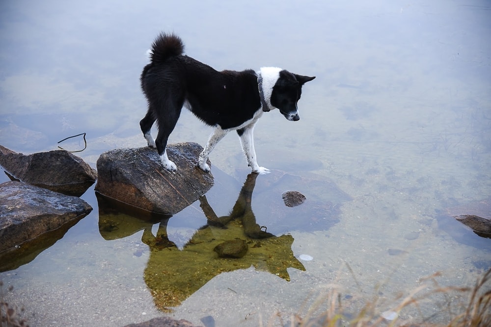 Sivusilmällä seurasimme suloisen Riesun seikkailua rantakivillä, kun se ilmeisesti piti silmällä pikkukalojen liikkeitä.