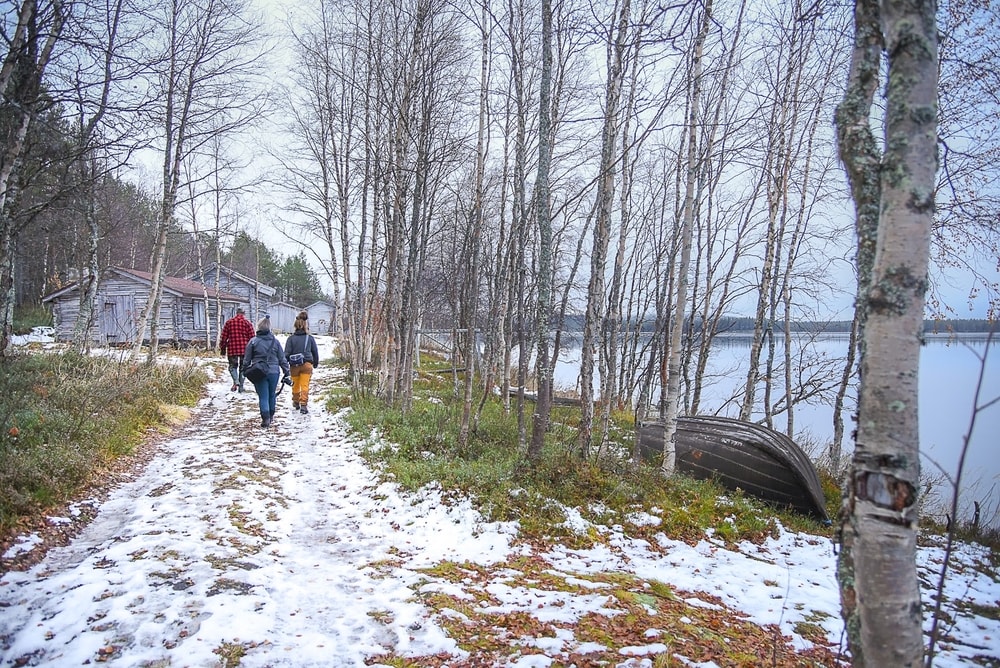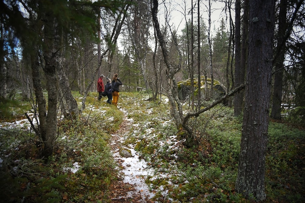 Leiri alkoi tällä viikolla jo tiistaina, mutta töiden puitteissa pääsin vasta perjantaina aamulla paikan päälle. Treffasimme itselleni tutulla paikalla, Jerisjärven kalapirttien parkkipaikalla. Siellä minua vastassa oli ensimmäisenä alueen asukas, Jari ”Lapland Shaman” Rossi, joka päivän aikana tutustutti meidät paitsi kalapirttien tarinaan, myös mm. läheiseen seitakiveen sekä omaan kotipaikkaansa, jossa saimme herkullisen, lähimetsien ja -vesien antimista valmistetun kotalounaan.