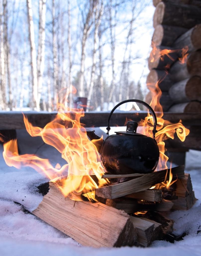 Minä jatkoin tällä viikolla nokipannukahvien keittämisharjoituksia. Tällä kertaa tukka ei syttynyt tuleen eikä pannu kaatunut, ja muutenkin kaikenlainen ylimääräinen häseltäminen oli nyt jo ensimmäisen harjoituskerran jälkeen poissa, mutta kahvista tuli todella pahaa, aivan liian vahvaa. Ehkä kolmas kerta toden sanoo? Ainakin ennen niin kirkas kahvipannu alkaa näyttää jo oikealta nokipannulta.