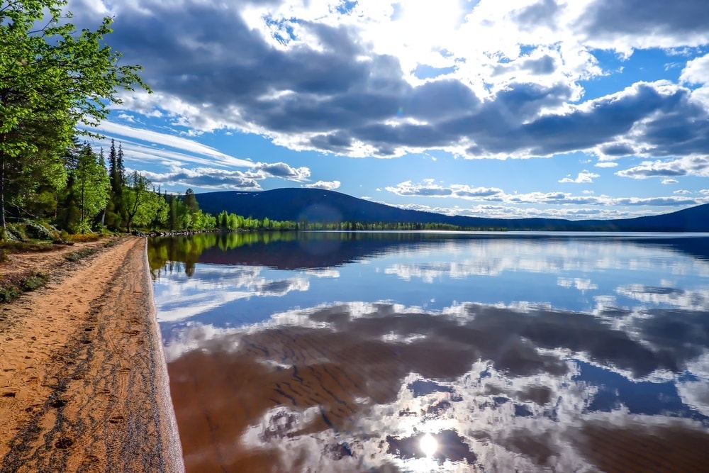 Rannalta oli ihana näköala Pallastuntureille. Meillä oli eväänä pari myslipatukkaa, herkuteltiin ne. Joltain oli jäänyt tuli savuttamaan tulipaikalle, sammutettiin se.