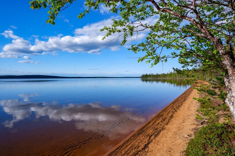 Rantavedessä uiskenteli yksinään pieni kala. Metsässä kukkivat hillat.