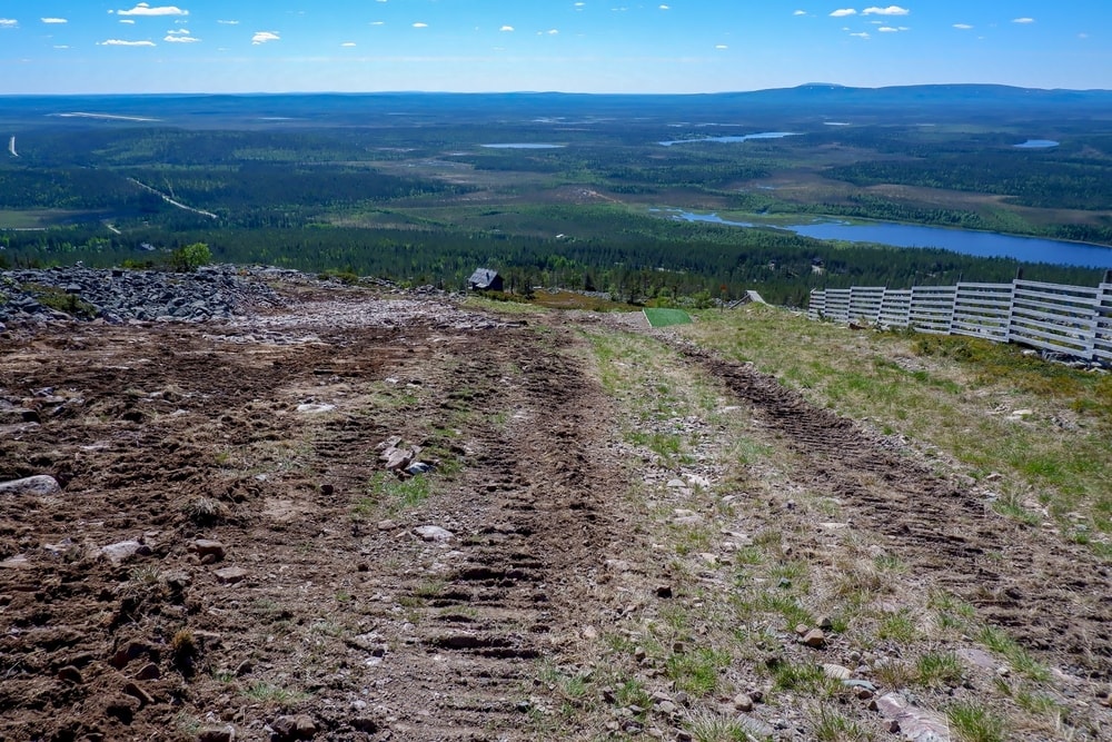 Päätettiin tehdä päivän lenkki Levillä. Tarkoitus oli kävellä huippupolku, mutta päätettiinkin tällä kertaa käydä katsomassa Joulutarina-elokuvan kuuluisaa lavastemökkiä. Muistin kaverin kuvailut mökin sijainnista, ja se löytyikin helposti. Mökille oli huipulta aika jyrkkä lasku, ja tietty sitte takas päin jyrkkä nousu paahtavassa auringossa.