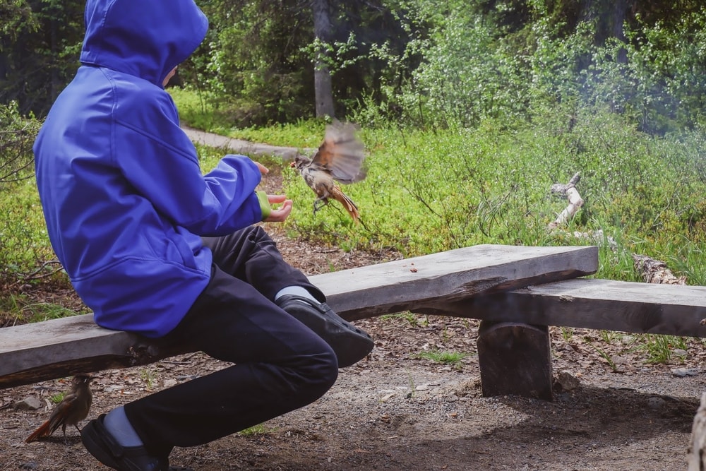 Pian tulivat kuukkelit. Riemu repesi kun huomattiin, että ne olivat riittävän rohkeita tullakseen hakemaan makupalaa kädestä.