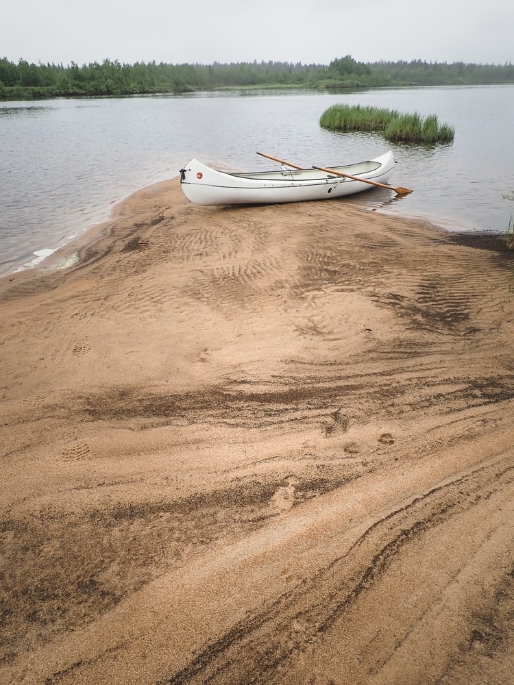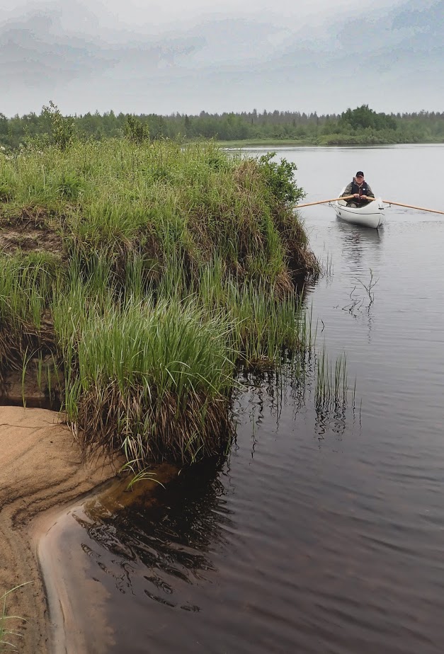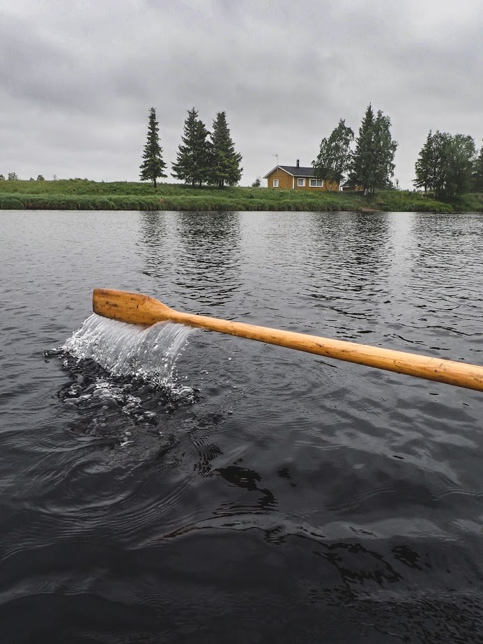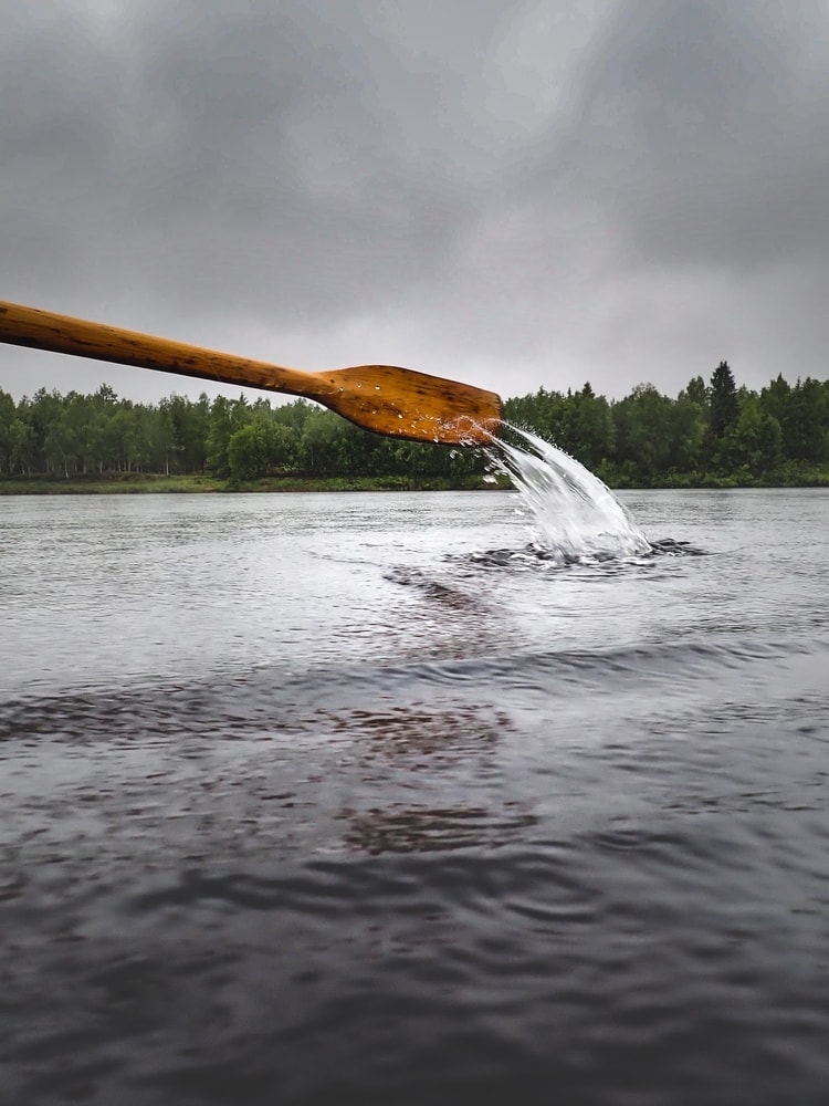 Tuntui hyvältä, kun kanootti lipui pitkästä aikaa vesille. Taivaalta tihutti vettä, ja sää oli veitsellä leikattavan harmaa ja märkä, täynnä happea. Pitkän tauon jälkeen olo oli aluksi kiikkerä, mutta kun liikkeelle päästiin, oli siinä mukava olla.