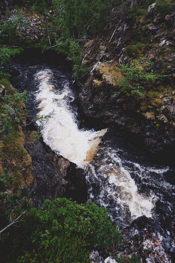 Perillä vesiputouksen äärellä veden kohina oli niin valtava, että se tuntui melkein vatsanpohjassa saakka. Hetken aikaa paikkaa katselimme ja ihailimme, sitten lähdimme jo takaisin autolle.