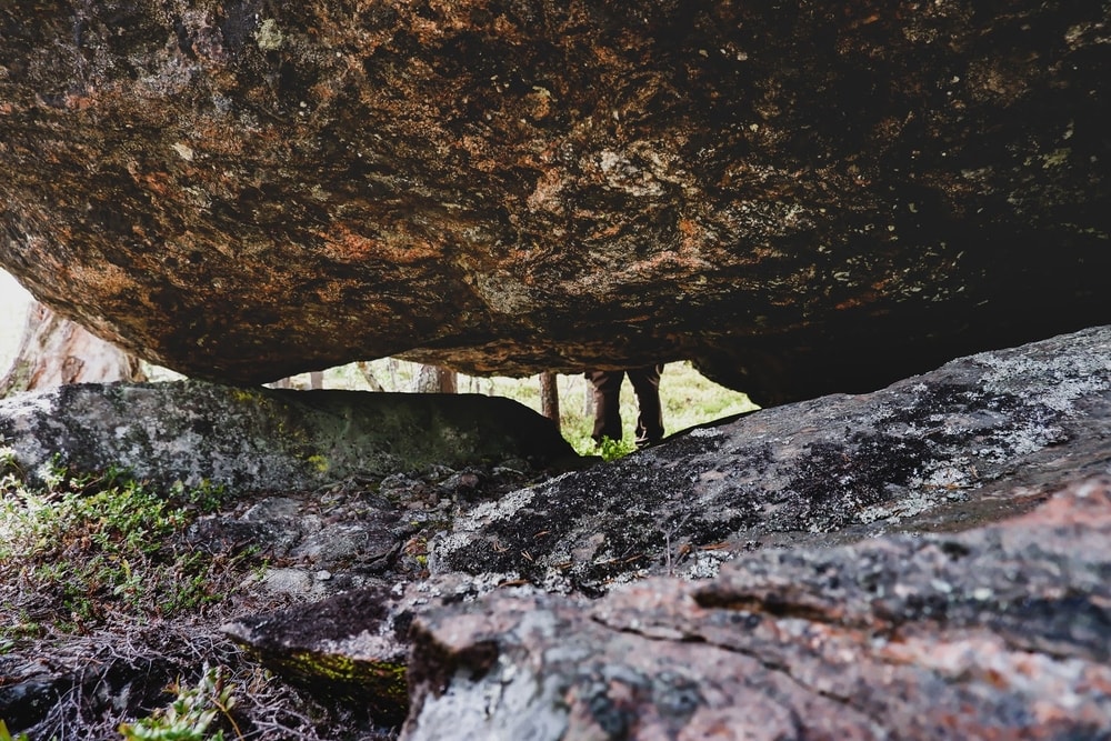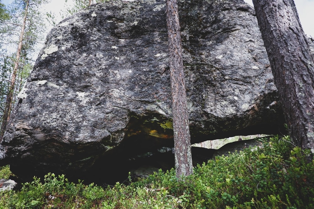 Löysin kartalta Junkirova-nimiselle nyppylälle merkityn seitakiven, ja lähdimme katsomaan sitä. Ajoimme pientä hiekkatietä lähemmäs, ja jonkin aikaa metsässä käveltyämme löysimme seidan, josta ei voinut erehtyä. Valtavan kiven alta näki läpikin.