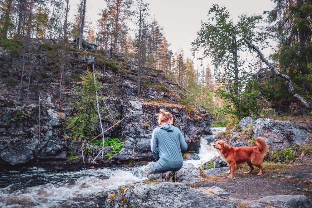 Aurinko paistoi, ja Kuerlinkoilla riitti paljon ihmeteltävää. Tällä kertaa väkeä oli myös joen toisella puolella, laavulla tulistelemassa.