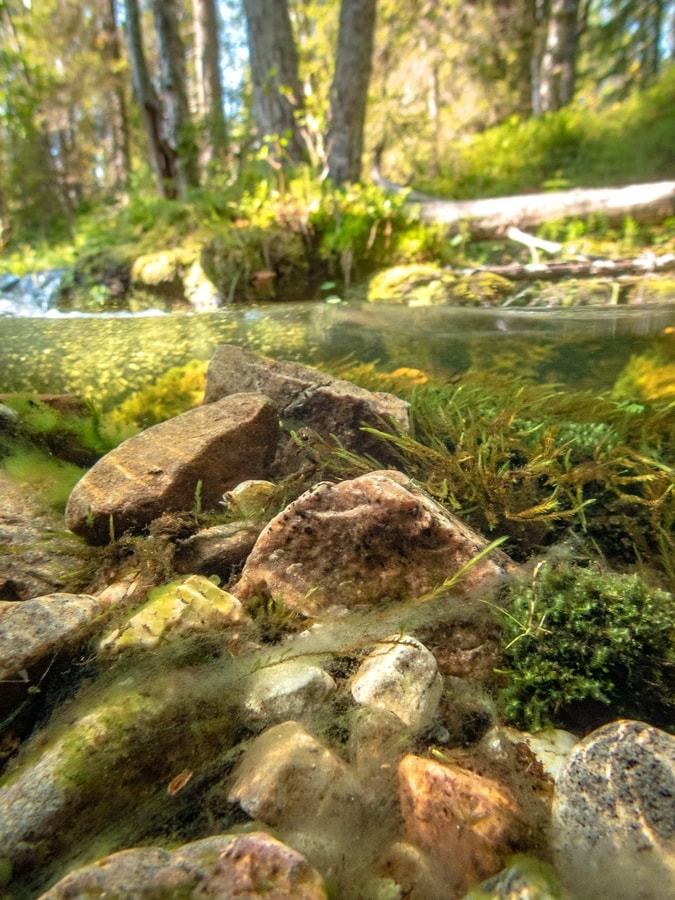 Hetken kuljettuamme kuulimme Pyhäpuron solinan. Paikka oli todella kaunis! Otin pari kuvaa myös pinnan alta.