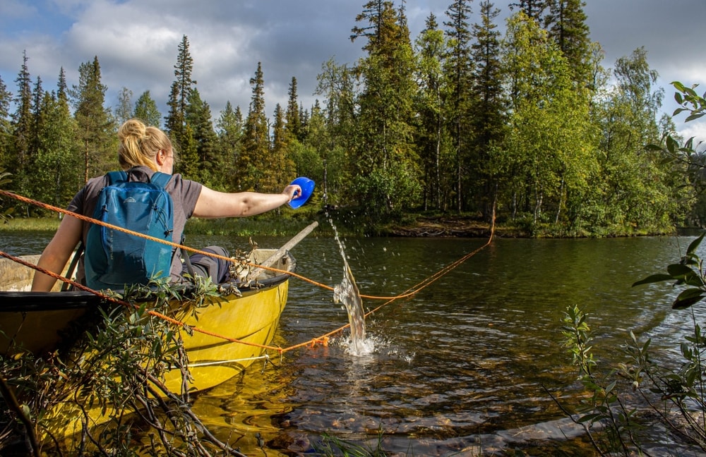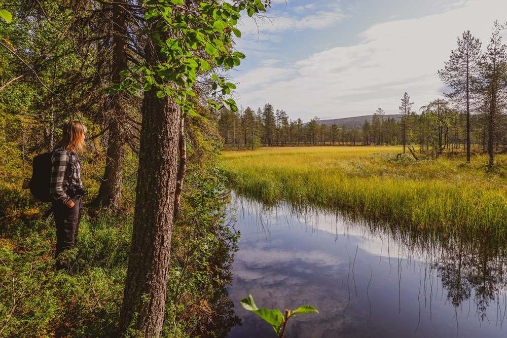 Sitten olikin aika nousta vedestä, pukeutua, alkaa pakkailla kamppeita ja suunnata kohti autoa. Ihan huikea reissu oli takana. Juuri tällaiset retket, joissa ei oikein tiedä minne on menossa ja mitä seuraavan mutkan takaa löytää, ovat suosikkejani. Lapin rauhaa, hyvää seuraa, ihania maisemia, vaihtelevia luonnon tunnelmia ja kiinnostavia yksityiskohtia kauniissa säässä eikä kiire minnekään – ihan parasta. Ja jotenkin juuri tällaiset retket tuntuvat olevan kaikkein parhaimmillaan juuri syksyllä.