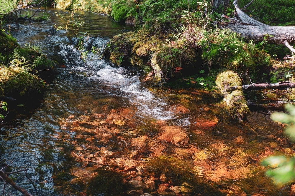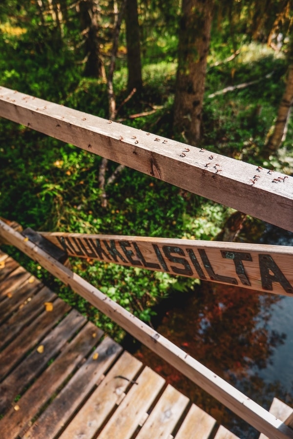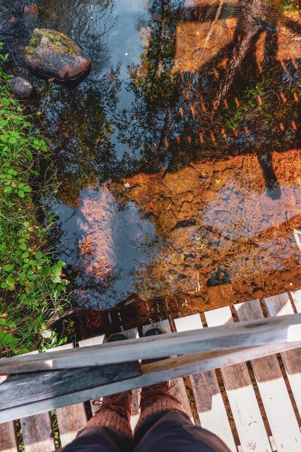 Sillan maisemaa oli pakko pysähtyä ihailemaan hetkeksi. Vesi oli todella kirkasta, mutta yhtään kalaa ei onnistunut bongata. Jälkikäteen tarkistin, että joen nimi oli Kaivosoja. Vaikea nähdä miten näin kauniilla paikalla voi olla noin ikävältä kuulostava nimi.