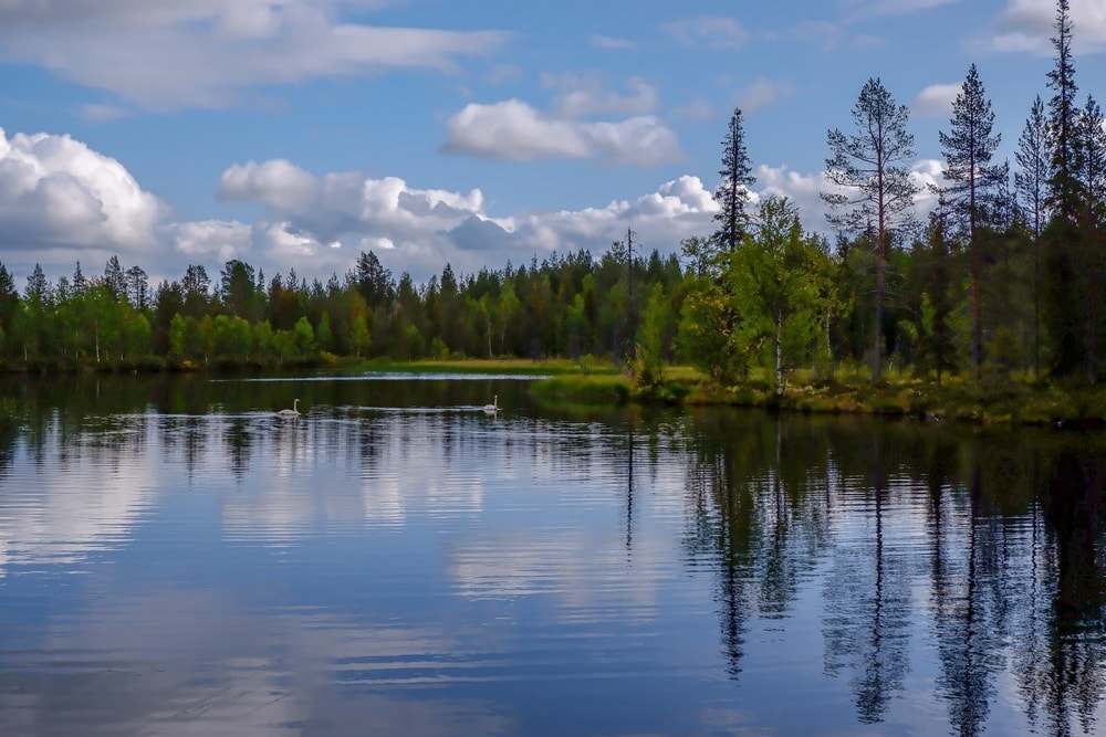 Pyhälompolosta nousi kolme joutsenta heinien keskeltä lentoon. Upea näky, valtavat valkoiset linnut. Harmitti tosin, että he lähtivät meitä väistämään – kunpa olisi voinut jotenkin viestiä heille, ettei meidän takia kannata vaivautua ilmaan.