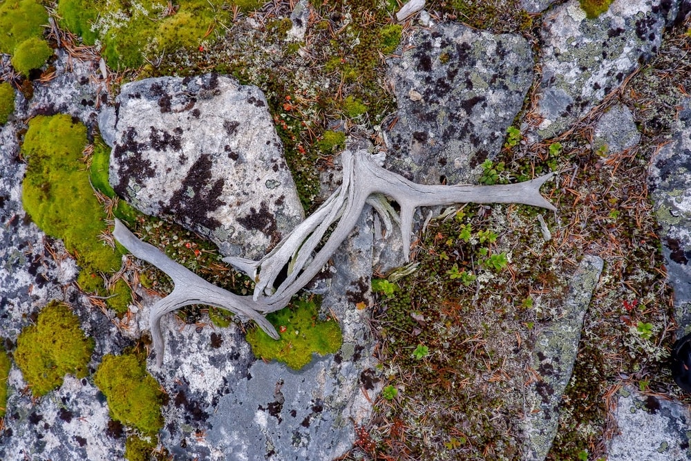 Osuimme löytämään luonnon jo haurastuttamat poronsarvet.