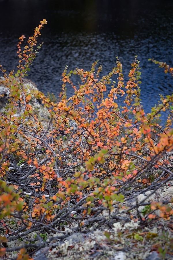 Maisema oli tyystin toisenlainen kuin Taatsijärven metsäisellä ja kuivalla vastarannalla, jossa seita on. Täällä oli paljon avarampaa, ja paljon ruskaa. Vaivaiskoivut ja riekonmarjat olivat jo upeissa väreissä.