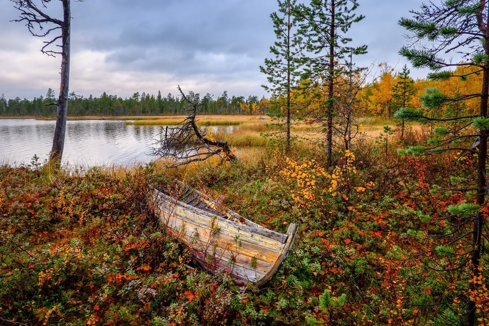 Mikä mahtaa tämän veneen tarina olla? Milloinkohan se on viimeksi ollut laineilla, ja miksi se kerta on jäänyt viimeiseksi? Veneen värit sopivat ihanasti ruskaan.