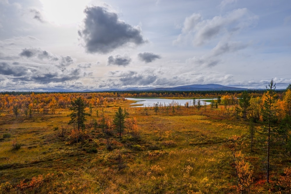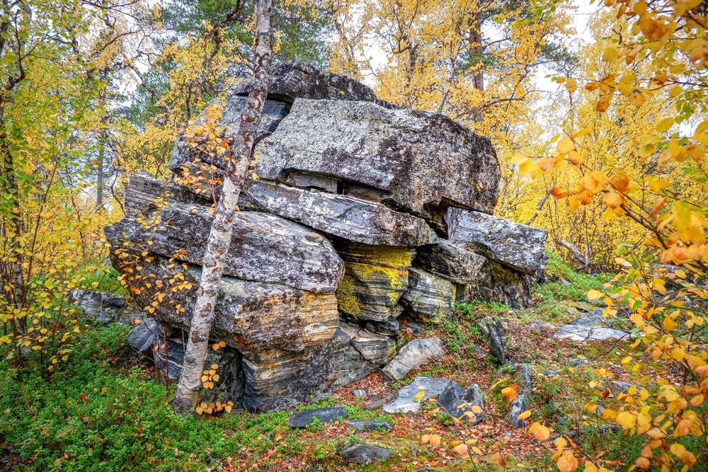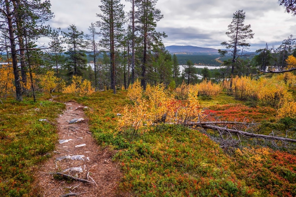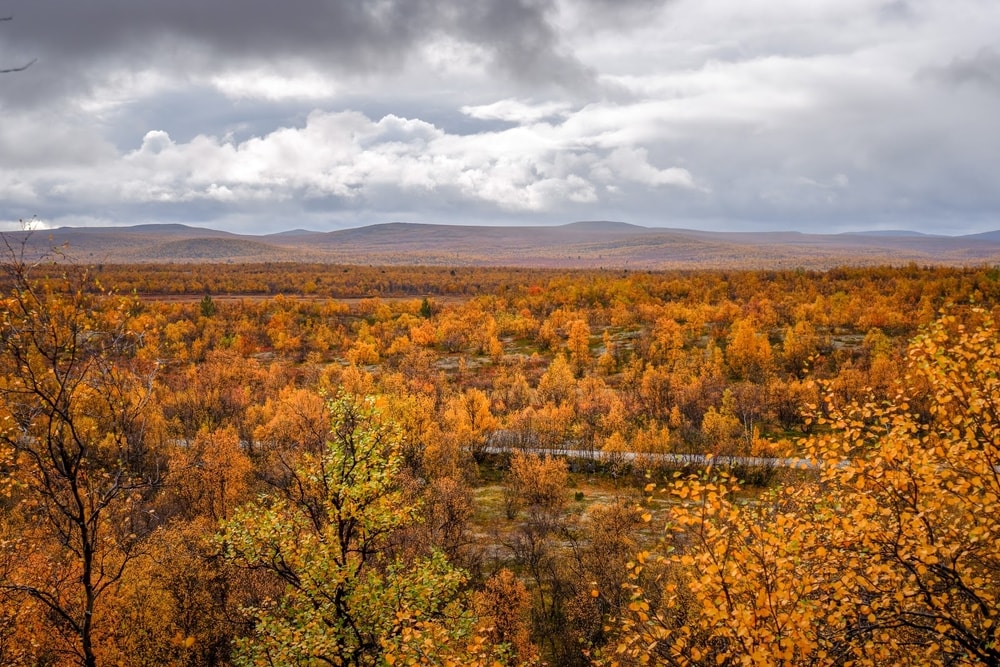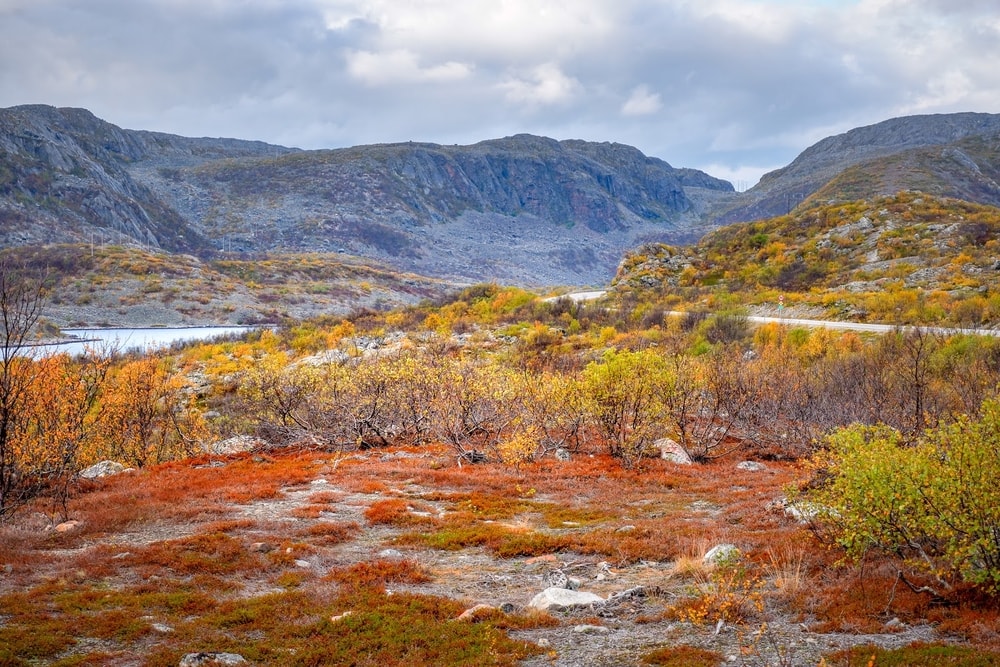Hiljalleen maisema alkoi jylhistyä ja tulla yhä karummaksi. Koivikot olivat monin paikoin muuttuneet mustiksi, varmaankin toukan syötyä ne. Mustat koivikot yhdessä karujen, tummien vuorentynkien kanssa toivat mieleeni Mordorin. Maaruska onneksi vielä piti värejä yllä.