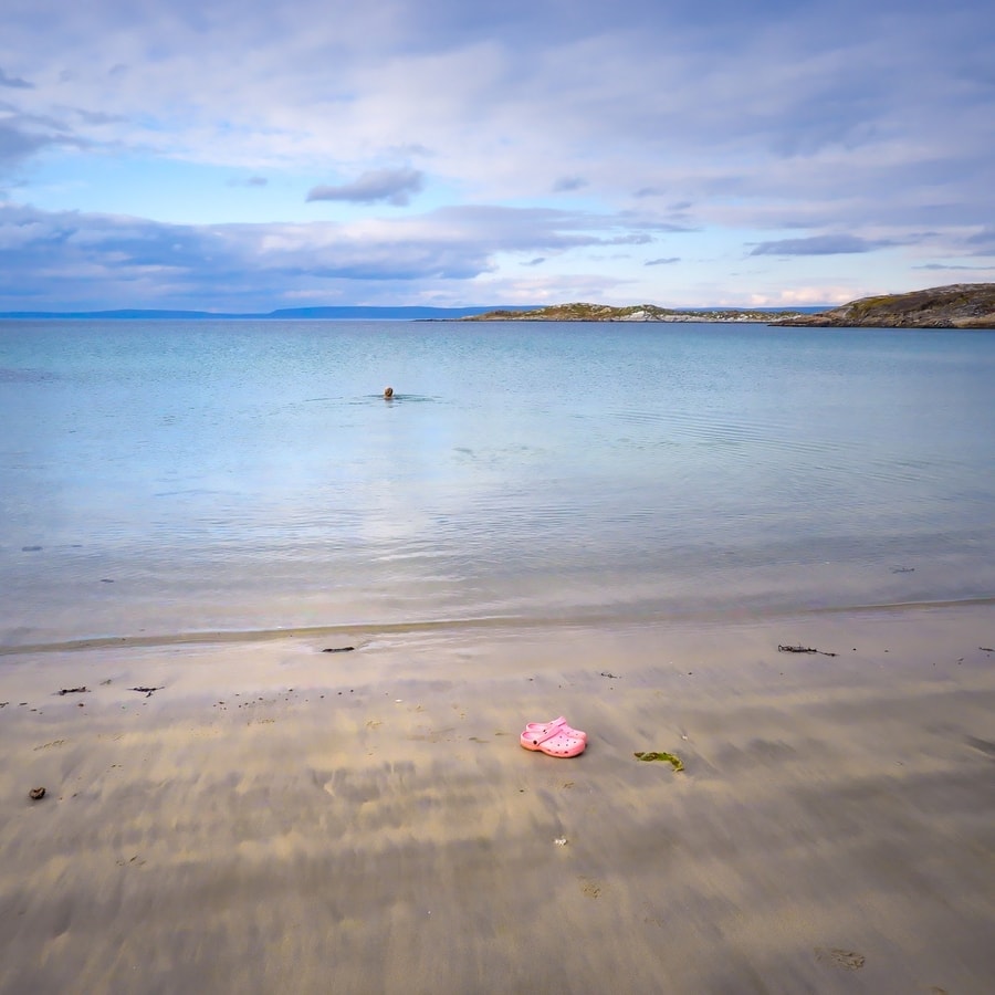 Pykeijaan pääsemiseksi piti poiketa päätieltä 18 kilometriä sivuun. Tien päässä odotti pieni ja sievä kylä, jonka ikoninen hiekkaranta oli juuri niin kaunis kuin miltä se on kuvissa näyttänyt. Kuuluisan Jäämeren saunan terassilla istui ihmisiä. Meressä ei ollut ketään, ennen kuin minä ja äiti sinne menimme.