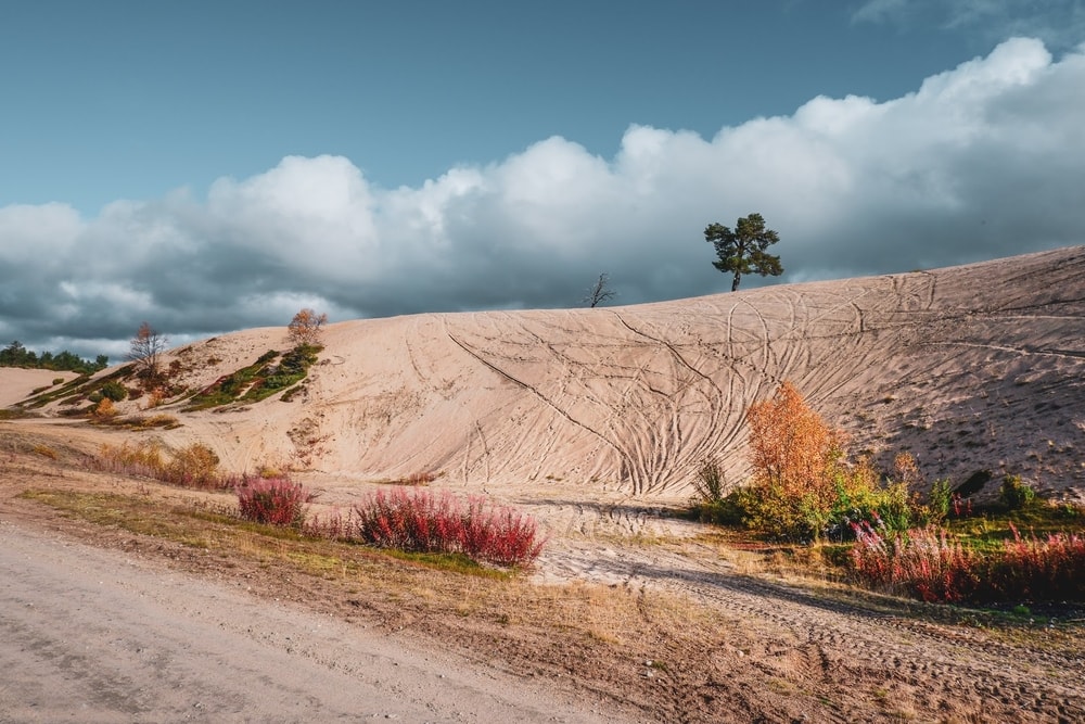 Sininen taivas, valkoiset pilvet, vaalea hiekka ja ruskan värit olivat todella mykistävä yhdistelmä. En olisi itse arvannut kääntyä pihatieltä näyttävälle hiekkatielle tätä paikkaa lähemmin katsomaan, mutta isä onneksi kääntyi, ja pääsimme tutkimaan paikkaa lähemmin. Minä olisin ajanut vain ohi, kuten aina ennenkin.