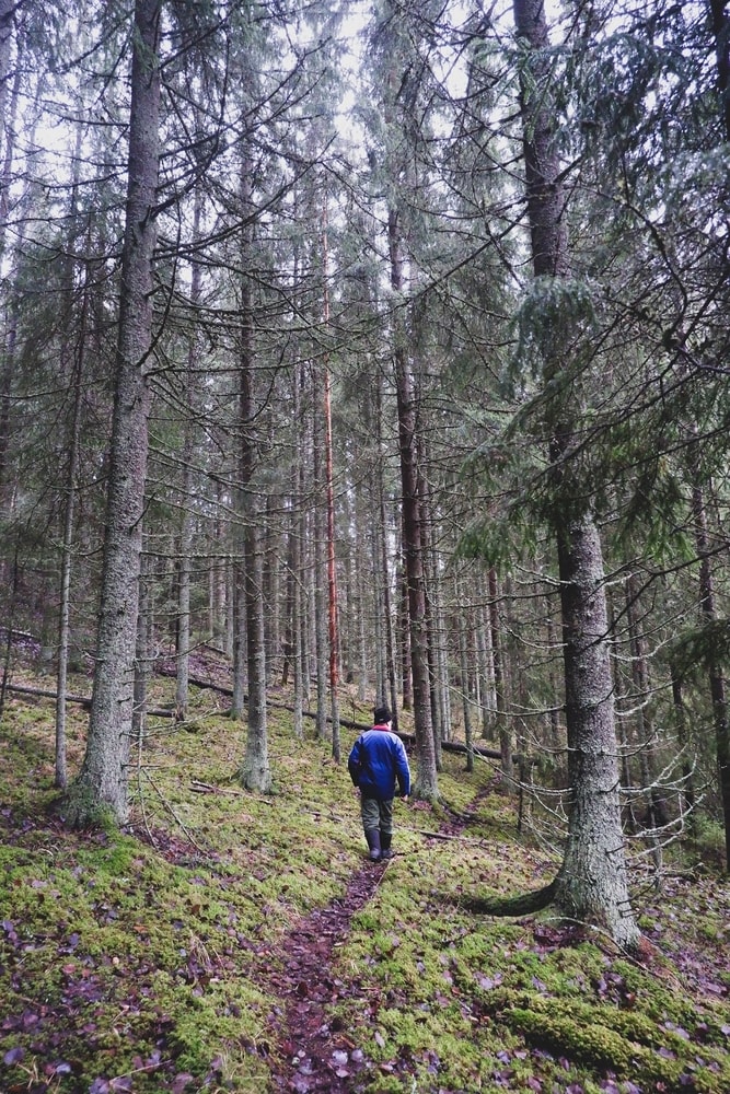 Nautin ihan hirveästi paitsi vanhempien seurasta, myös metsän tutusta tunnelmasta. Tällaisten metsien sylissä minä olen kasvanut. Suuria kuusia, haavanlehtimattoja, solisevia vaaleanharmaita puroja ja vihreääkin vihreämpiä sammalia. Ja ennen kaikkea niin tiheää metsää, että siellä on olo hyvin turvallinen – kaukaa ei kukaan voi nähdä.