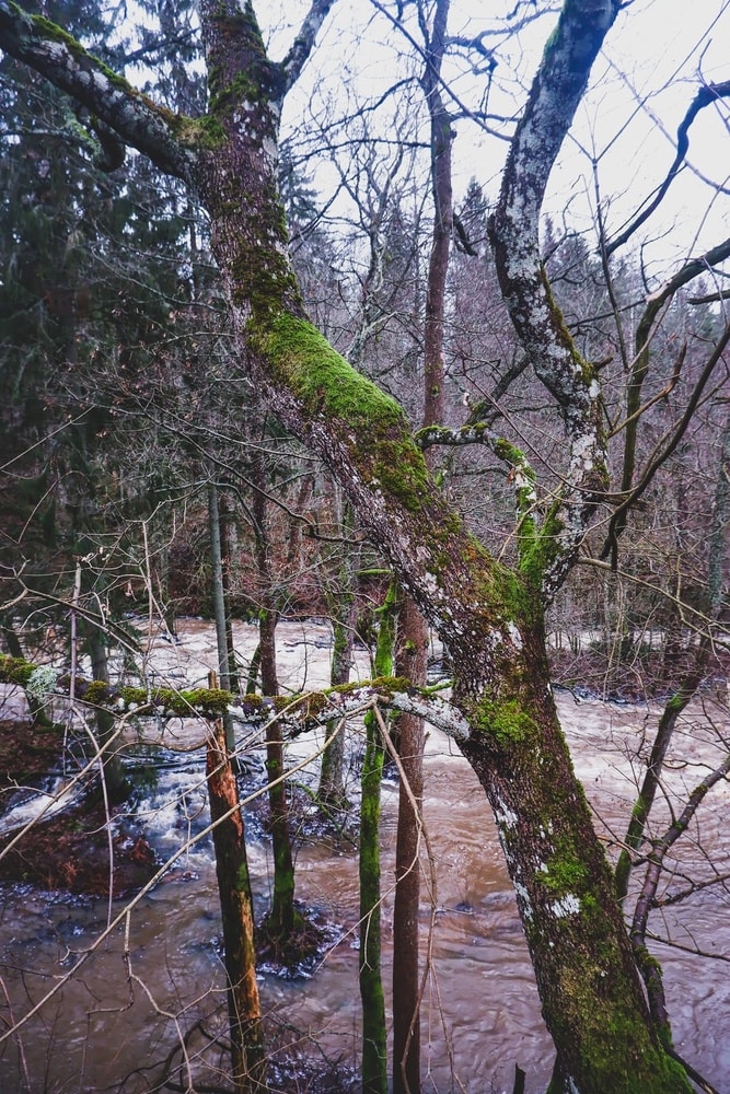 Viime viikolla palasin kosken maisemiin ja mukana oli tällä kertaa paras ystäväni. Sää oli harmaa, mutta ei sateinen. Harmaa taivas toi hienosti esiin vanhan metsän vihreät sammalet. Latokartanonkoski on luonnonsuojelualuetta, joten kaatuneet puut saavat levätä metsässä rauhassa ja tarjota elinpaikan sammaleille ja muille pienille eliöille.