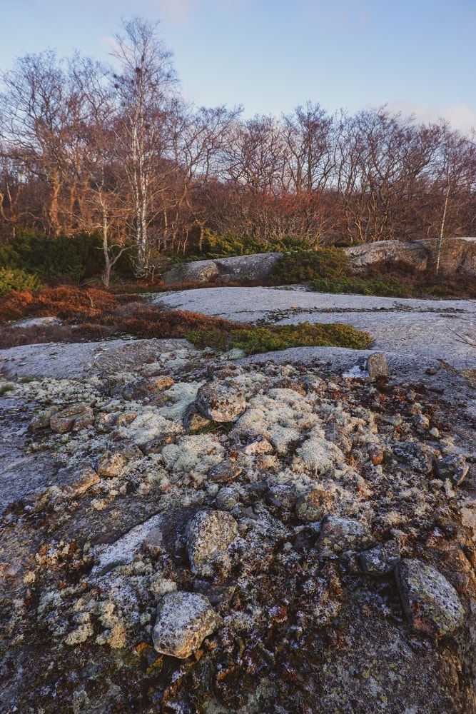 Olimme huomanneet kartalta merkinnän ’Stenkompass’ ja lähdimme etsimään sitä. Emme oikein tienneet mitä etsimme ja ehdimme jo innostua, että olisiko kiveen kaiverrettu hieno kompassi. Ihan niin hieno kohde ei kuitenkaan ollut kyseessä, vaan tosiasiassa kallioon oli kivistä rakennettu kompassin muotoinen kuvio, joka oli jo kaiken kukkuraksi kasvanut täyteen jäkälää ja sammalta. Ei kovin näyttävä kohde, mutta tulipa löydettyä. Kukahan sen on tehnyt?