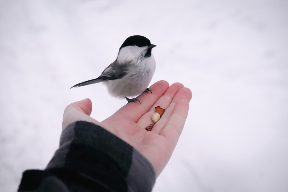 Linnut kyllä viipottivat tuttuun tapaansa lintulaudalla. Näinä aikoina on kamalan tärkeää, että tarjolla on ruokaa aina edes jonkinlaista. Minulla on siemenien lisäksi lintulaudalla aina talipötköt ja talipalloja. Päivisin vien sinne pähkinöitä, mutta ne ovat niin suosittuja että katoavat nopeasti. Kädestä tarjoamani tusina pähkinää katosivat parempiin nokkiin sekunneissa.