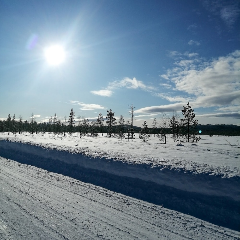 Aurinko on alkanut sulattaa kattojen lumikuormaa ja onkin jännä nähdä, milloin lumet jysähtävät alas piharakennusten peltikatoilta. Lunta on paljon ja kevättulva on hyvinkin todennäköinen. Pahimmillaan se saattaa katkaista jopa tien, jota pitkin kuljemme täältä perältä ihmisten ilmoille.
