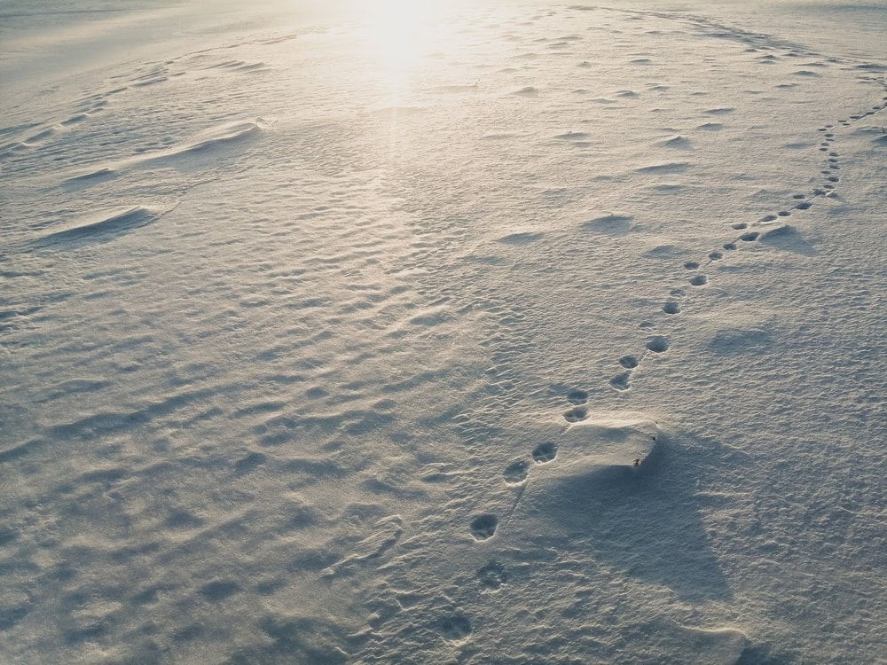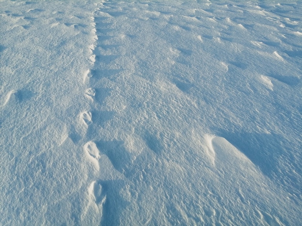 Jäniksen jäljet olivat nousseet koholle. Tai, oikeammin, lumihanki niiden ympäriltä oli tuiskunnut matalammaksi, jättäen jäljet koholle.