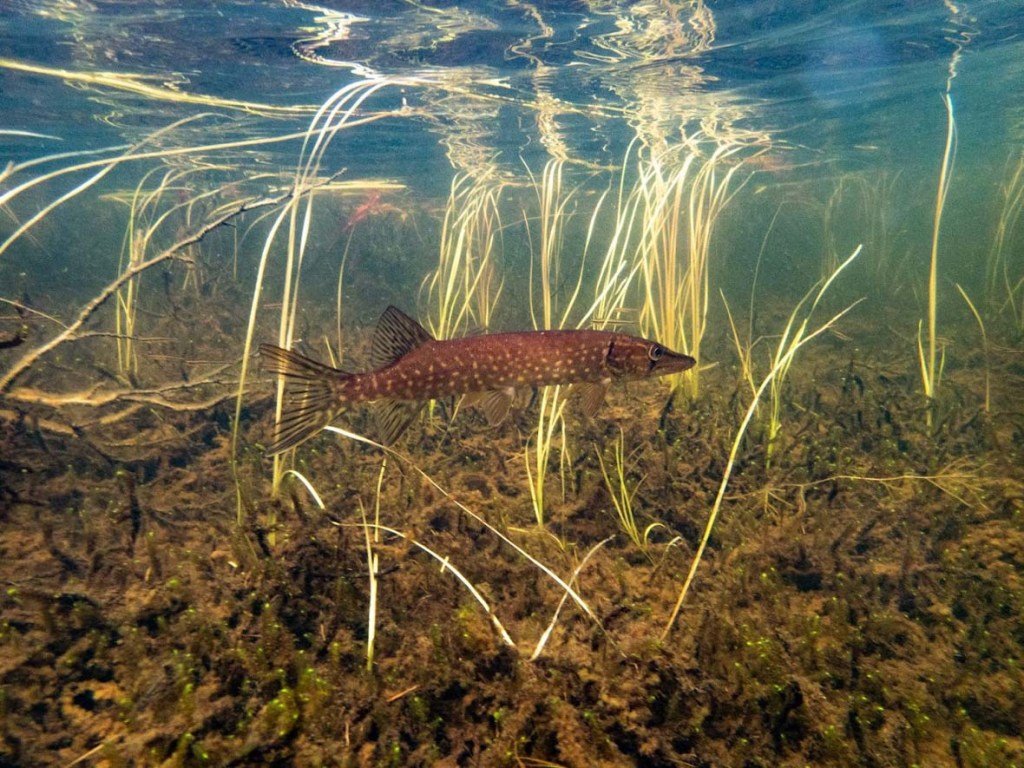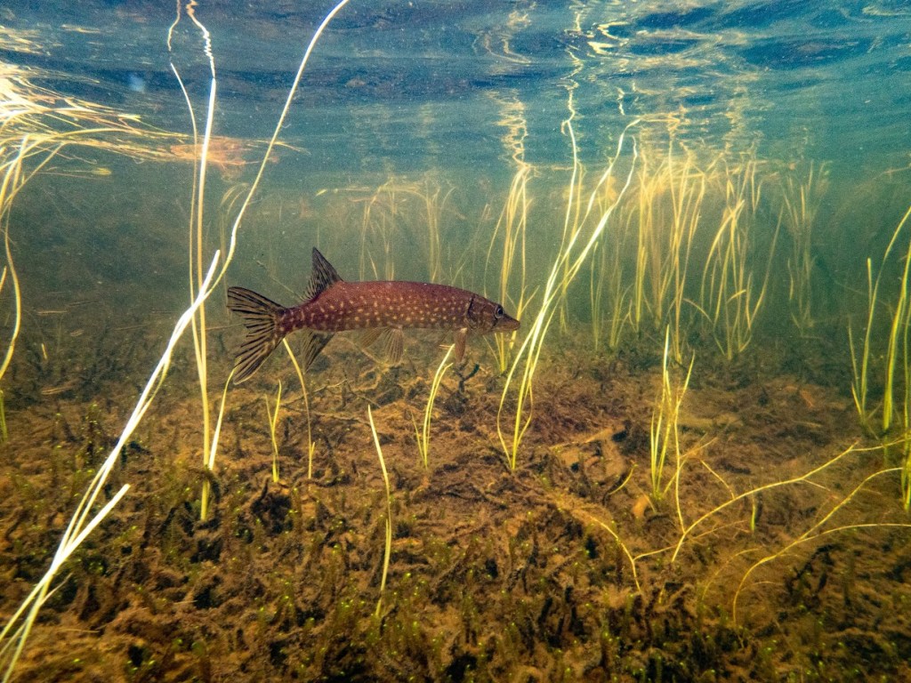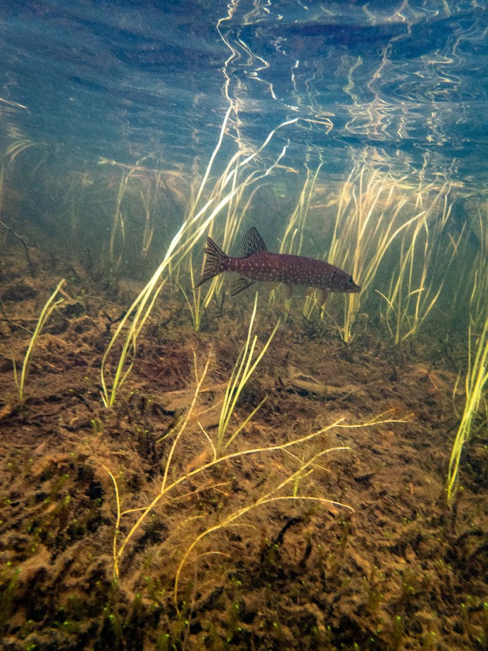 Snorklailin kuitenkin menemään kaikessa rauhassa, kunnes koin kesän hienoimman vedenalaishetkeni: hauki ui korvani vierestä eteeni. Siis todella läheltä! Kala jäi silmieni eteen tuijottamaan minua pitkäksi aikaa, eikä varmaan voinut uskoa silmiään sen enempää kuin minäkään.