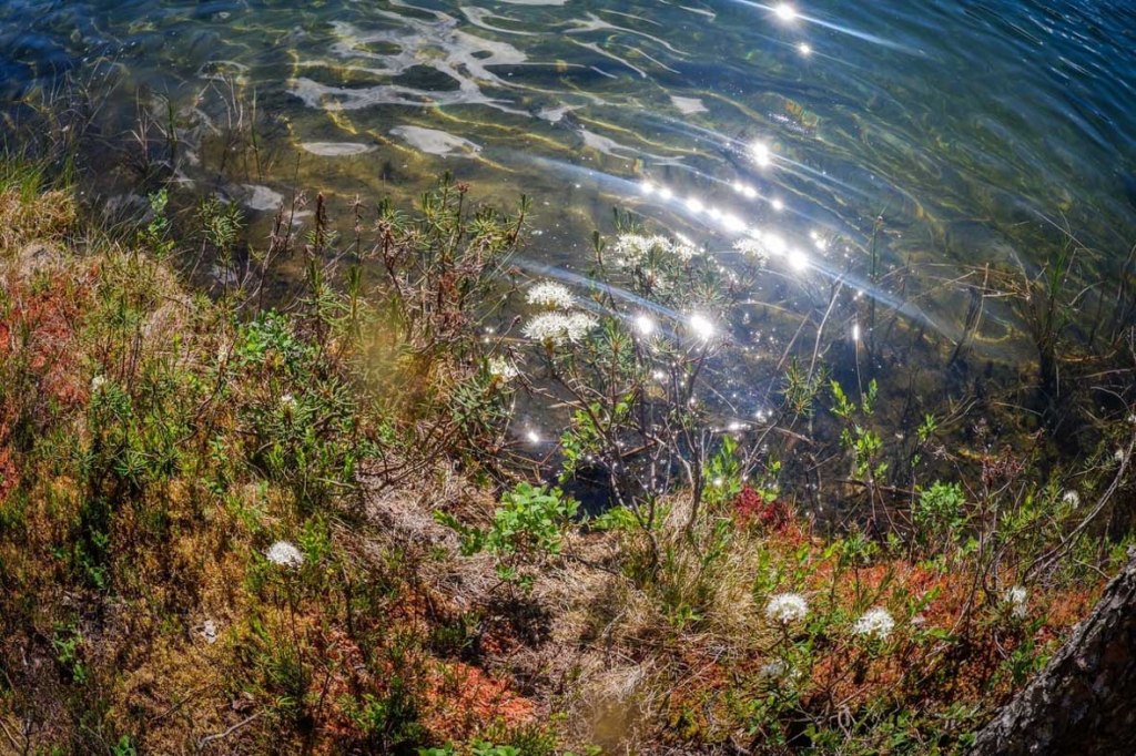 Sain viime vuonna hieman kautta rantain tietää eräästä kittiläläisestä metsälammesta, jonka vesi on erityisen kirkasta. Kävimme tänään mieheni kanssa juhannusretkellä tuolla kaukana kaukana pikkuteiden takana, ja paikka oli paljon kauniimpi kuin mitä osasin edes aavistaa. Sen nimi jäi arviotukseksi, ainakaan tunnistettavaa kaivosta ei vaikuttanut olevan mailla halmeilla, ja alue vaikutti omiin silmiini hyvinkin luonnontilaiselta. Rannalla suopursut kukkivat ja tuoksuivat, ja muodostivat ihanan lisänsä uskomattoman kauniiseen maisemaan, jossa turkoosi vesi välkehti kristallinkirkkaana vihreän harjumetsän ja punertavien rahkasammalrantojen keskellä.