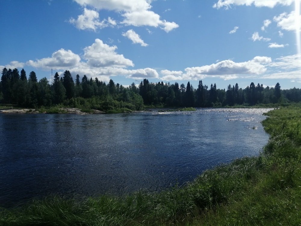 Sampon jälkeen ajelimme jo takaisin Rinkiseen, sillä olimme varanneet saunavuoron. Sauna ei valitettavasti ollut rannassa (ehkä tulvariskin vuoksi?) mutta saunottuamme otimme pari olutta mukaan ja menimme rannassa oleville penkeille niitä nauttimaan jokinäköalaa katsellen. Seurana oli paljon sääskiä sekä kaksi norjalaista hieman syrjemmässä. Rantapusikoista hiippaili hiljalleen kalastajia yksi toisensa jälkeen.